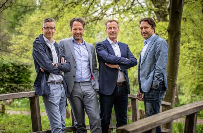Fotobijschrift: v.l.n.r. Menno Stokman (Directeur CELTH), Xander Lub (lector Hospitality Management & Experience Design), Riemer Rijpkema (Directeur CLC-VECTA), Arno Wouters (bestuurslid CLC-VECTA)