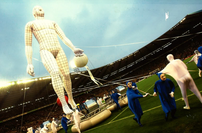 In 2000 mochten wij Franco Dragone aantrekken als creatieve voorman voor de opening van EURO 2000 in zijn geliefde België. Hij bedacht ‘de aftrap’ die hij middels een immense pop aan een kraan wilde doen laten plaatsvinden. Het idee werd door ons team van enthousiaste collega’s doorvertaald in een op een hovercraft voortgestuwde inflatable. Sightline was verantwoordelijk voor de technische productie. Airworks tekende voor de reus en de Universiteit Twente voor het hovercraft systeem waarop de reus zich soepel voortbewoog. Deze twee ingenieuze technieken waren nieuw en nog niet eerder vertoond. Het kampioenschap bood ons de kans en wij grepen het podium om te laten zien wat wij met z’n allen in huis hadden.