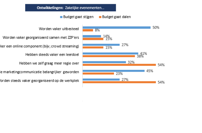 NIDAP onderzocht meer dan 200 middelgrote en grote opdrachtgevers van zakelijke evenementen over de marktomvang, hun bestedingen en trends in de voorkeuren. Het rapport bevat strategische informatie voor landelijke partycateraars, locatieaanbieders en organisatiebureaus. Eventbranche.nl heeft van NIDAP inzage gekregen in het rapport. Uit het onderzoek blijkt dat er een aantal ontwikkelingen verband houdt met stijgende of dalende budgetten: