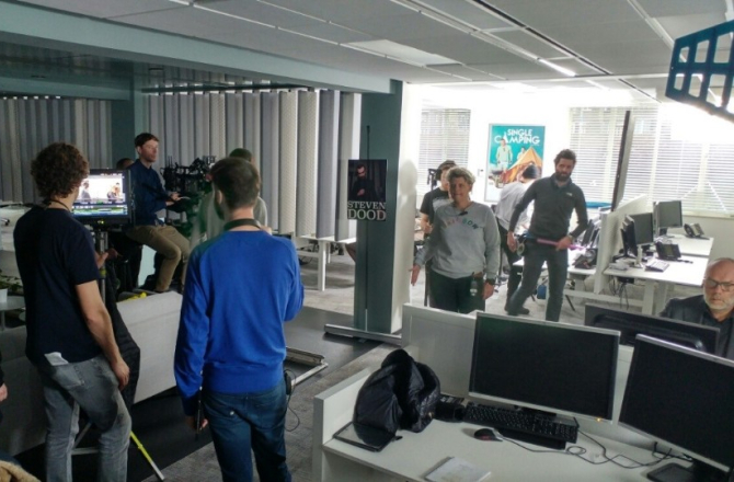 Onlangs kwam er een gezelschap bij de schouwburg met de intentie om de ruimtes te veranderen in een professionele filmset. Van ‘s ochtends vroeg tot laat in de middag is de crew bezig geweest met het opbouwen van de set op verschillende ongebruikelijke plekken zoals de kantoortuin, kleedkamers, foyers en de laad/losruimte. Meer dan 60 mensen hebben er samen voor gezorgd dat alles vlekkeloos verliep en hebben na afloop opgeruimd en een borrel gedronken in café Mevr. Dudok om de succesvolle filmdag tot een einde te brengen.