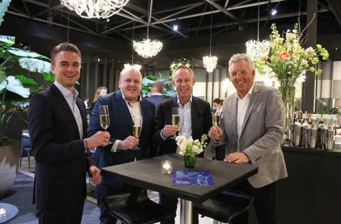 Foto vlnr: Jop Thissen (MECC), Danny Keppels (Event Management Group), Frank Mimpen (MECC) en Paul ‘t Lam (Events Company)