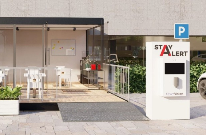 1. Stay Cool bevat (LED) systemen om aan de ingang van een ruimte real-time temperatuurmetingen uit te voeren en instructies te geven.