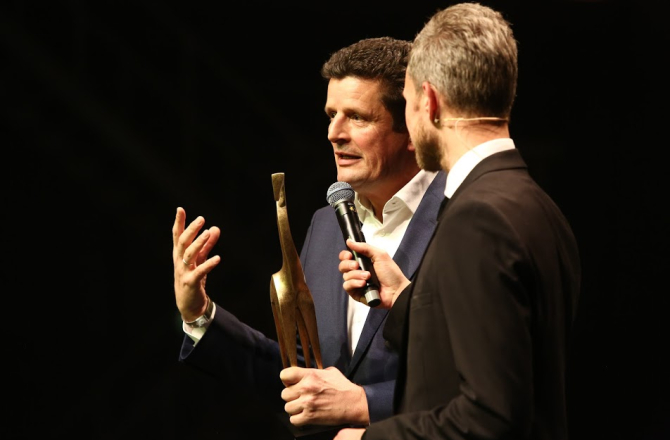 #GOUDENGIRAFFE – Tijdens de Gouden Giraffe Event Awards in de Fokker Terminal, werd Pieter Bas Boertje door de aanwezige eventprofessionals en opdrachtgevers én de ruim 2000 online stemmer op EventBranche.nl beloond met een oeuvreprijs. De zichtbaar ontroerde Boertje benadrukte nog maar eens wat een prachtig, mooi en effectief vak de eventbranche is.
