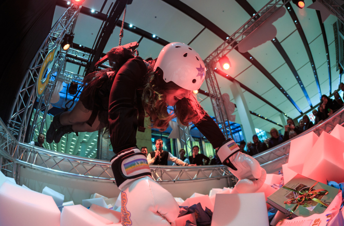 Het winkelend publiek in Hoog Catharijne maakte door de ‘Lucky Crane’ op een aansprekende manier kennis met de gloednieuwe Zuidpassage en het bijbehorende winkelaanbod. De enorme prijzenbak was gesponsord door de ondernemers van het winkelcentrum en zodoende werden de winkeliers op een positieve wijze onder de aandacht gebracht. De creatieve openingsshow sloot perfect aan bij de marketingstrategie van Hoog Catharijne, genaamd ‘Let’s Play’, waarbij winkelen een ware beleving is.