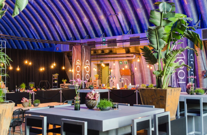 Deze exclusieve VIP-ruimte voor bedrijven en groepen was gevestigd in een dubbeldekker tent uitkijkend over het festivalterrein. Van der Maarel heeft hier gewerkt met de nieuwe Nyborg lijn: een lijn met warme materialen, elegantie en comfort. De chique uitstraling kwam terug in de stoere Elegance tafels met zwart staal, bladen van warm eikenhout, kleurrijke objecten, uitbundige groenobjecten en zwarte accenten zoals olievaten.