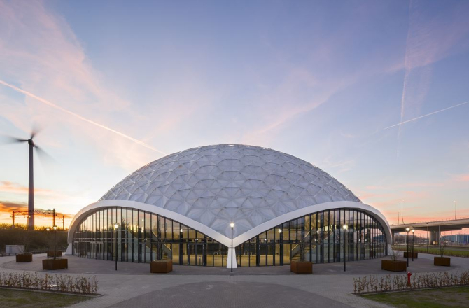 De nieuwe evenementenlocatie is een zogenoemde geodetische koepel, een uitvinding van de Amerikaan Richard Buckminster Fuller. Bij de bouw in 1969 was het met een hoogte van 24 meter en een vrije overspanning van 60 meter de eerste geodetische koepel van Europa en de grootste dome ter wereld. De historische koepel is herbouwd met originele materialen, maar kreeg wel een duurzaamheidsupgrade om toekomstige congresbezoekers comfort en een optimale akoestiek te bieden.