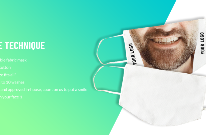 Het produceren van deze unieke persoonlijke mondmaskers op (event)locatie is binnen 2 minuten gebeurd of je upload een foto en we versturen hem per post. Onze maskers zullen iedereen laten lachen. Vanzelfsprekend ook verkrijgbaar met logo.