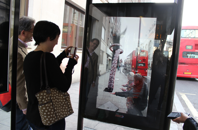 Een bushalte op New Oxford Street was het decor van verborgen Augmented Reality technologie. Nietsvermoedende voorbijgangers waren getuige van buitenaardse wezens, loslopende tijgers en gigantische robots in de straten van Londen. AR-marketing die menig bezoeker liet verbazen. De merkactivatie was onderdeel van de campagne #Unbelievable, die de creativiteit en innovativiteit van het cola-merk moeten benadrukken.