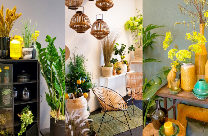 De gemene deler van de drie stijlen is de vrolijke kleur geel. Glanzend en knallend of juist mat en subtiel. In felle tinten en intense kleurcontrasten of op een natuurlijke, pure manier. Iedere sfeer heeft zo zijn eigen kenmerken. Zo brengt Sunshine Spirit vooral nieuwe energie en gedurfde variatie. Exotic Fever staat voor een tropische junglelook, waarbij grote planten en luxe accessoires zorgen voor de levendige sfeer, en Lemon Breeze neemt ons tot slot mee naar ongerepte stranden op een verlaten, mediterraans eiland. Het enige wat we zelf nog hoeven te doen, is genieten. Samen met onze gasten, klanten en personeel natuurlijk.